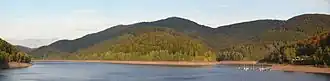 ![]() View of the Stöberhai (centre) from the dam on the Oder Reservoir | |