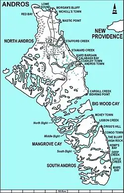 - ↑ NORTH ANDROS POPULATION BY SETTLEMENT AND TOTAL NUMBER OF OCCUPIED DWELLINGS: 2010 CENSUS - Bahamas Department of Statistics