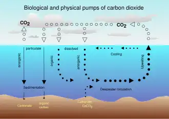 Together, the Subantarctic Mode Water (SAMW) and Antarctic Intermediate Water (AAIW) act as a carbon sink, absorbing atmospheric carbon dioxide and storing it in solution. If the SAMW temperature increases as a result of climate change, the SAMW will have less capacity to store dissolved carbon dioxide. Research using a computerized climate system model suggests that if atmospheric carbon dioxide concentration were to increase to 860 ppm by the year 2100 (roughly double today's concentration), the SAMW will decrease in density and salinity. The resulting reductions in the subduction and transport capacity of SAMW and AAIW water masses could potentially decrease the absorption and storage of CO2 in the Southern Ocean.[11]