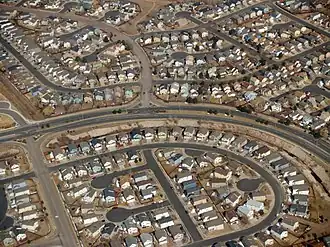 - Subdivisions carved from previously rural land into multiple-home developments built by a single real estate company. These subdivisions are often segregated by minute differences in home value, creating entire communities where family incomes and demographics are almost completely homogeneous.[66]