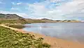 The Khorgo volcano is located near the eastern end of the lake, 10 rivers join this lake and only the Suman River springs from it.[2] The lake is located in Khorgo-Terkhiin Tsagaan Nuur National Park. According to the joint 2022 study of Mongolia's Ministry of Environment and Tourism and World Wide Fund for Nature, the area of the lake decreased by 6.4% from 7950.0 ha in 1995 to 7440.1 ha in 2015. This resulted in reduction of wetlands areas by 23.5% and increase by 39.4% of sands and eroded lands surrounding the lake.[3]