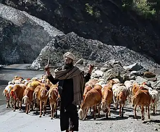 Livestock plays an important role towards the livelihood of the people in the region, serving as a relatively secure source of income as compared to unpredictable crop yields.[12] The average herd size is 17 standard units and typically consist of goats, sheep, cattle, buffaloes, camels, donkeys, and mules.[12]