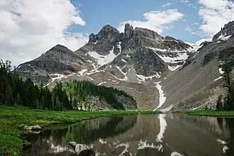 The Towers is a 2,842-metre (9,324-foot) mountain located on the border of Alberta and British Columbia on the Continental Divide. It also straddles the shared boundary of Banff National Park with Mount Assiniboine Provincial Park. It was named in 1917 by Arthur O. Wheeler.[1][2] Its nearest higher peak is Mount Magog, 2.5 km (1.6 mi) to the west.[2]