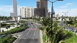 The region is sometimes subdivided into two parts, Tihāmat Al-Ḥijaz (تِهَامَة ٱلْحِجَاز; northern part) and Tihāmat ʿAsīr (تِهَامَة عَسِيْر; southern part).[1] The Yemeni part (Arabic: تِهَامَة ٱلْيَمَن, romanized: Tihāmat Al-Yaman) is an extension of Tihamat ʿAsir.[6] The plain is constricted and attains its greatest widths, 60 to 80 km (37 to 50 miles), south of Medina and Mecca.[1] The cities of Yanbu, Jeddah and Al Qunfudhah are located in the Hijazi part of the Tihamah. The Asiri-Yemeni part of the Tihami plain includes the cities of Jizan and Al Hudaydah. The temperatures in Tihamah are probably some of the hottest on earth. Tihamah in Arabic means severe heat and lack of wind.[7]
