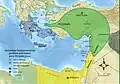 The Egyptian geographical term Retjenu is traditionally identified as an area covering Sinai and Canaan south of Lebanon,[5] with the regions of Amurru and Apu to the north.[6] As such, parts of Canaan and southwestern Syria became tributary to the pharaohs of ancient Egypt before the Late Bronze Age collapse. When Canaanite confederacies centered on Megiddo and Kadesh came under the control of the New Kingdom of Egypt. However, the empire's control was sporadic, and not strong enough to prevent frequent local rebellions and inter-city conflict.