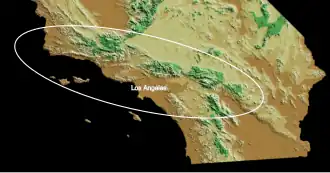 ![]() The ellipse outlines the region of the California Transverse Ranges | |