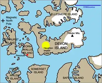 Map of the Devon Island region, including the Treuter Mountains