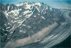 A trim line marks the previous height of Tana Glacier in Alaska