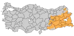 Southeastern Turkey (Northern Kurdistan) is considered to be one of the four parts of Kurdistan, which also includes parts of northern Syria (Western Kurdistan), northern Iraq (Southern Kurdistan) and northwestern Iran (Eastern Kurdistan).[3][4]