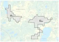- ↑ For example, Statistics Finland utilizes a grid system of 62,500 square metres (15.4 acres) for analyzing population, resulting in slight measurement differences between it and the other Nordic statistical bureaus.