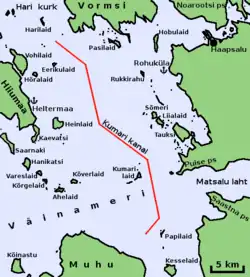 The Kumari Channel is a shipping lane running north–south in the Väinameri. It is 35 km long and has a minimum depth of five metres. The Rukki Channel runs east–west between Hiiumaa and the port of Rohuküla on the mainland.