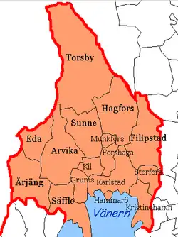 The county has more or less the same boundaries as Värmland Province, except that the municipalities of Karlskoga and Degerfors are part of Örebro County.