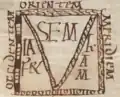 The V-in-square (or V-in-◻) map is a highly schematic type of mappa mundi (world map) in use in Europe during the Middle Ages. It is based on and usually found in conjunction with the Etymologiae of Isidore of Seville.