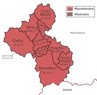 The largest ethnic group in the region are the Macedonians (81.06%) followed by the Albanians (5.03%), Turks (1.88%), Bosniaks (1.61%), Roma (1.46%).
