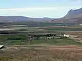 Vatnsdalsá- Flóðið and some mounds of the Vatnsdalshólar (left), with the steep incline of Vatnsdalsfjall in the background