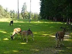 A particular attraction in the Veldenstein Forest is the wildlife park. In the east the nature reserve of Pegnitzau zwischen Ranna und Michelfeld borders immediately on the forest. The forest also has numerous rock formations, caves and dolines, some of which are classified as natural monuments or geotopes.