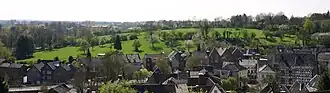 The Venn Foreland (German: Vennvorland) is a region of the North Eifel on the northwestern edge of the High Fens and in its transition zone with the Jülich-Zülpich Börde. Also part of the region are the areas around the city of Aachen and town of Stolberg as well as parts of Eschweiler. It is a heavily built-up area and includes the largest part of the Aachen Municipal Region. Even parts of the High Fens-Eifel Nature Park belong to it. The valley of the river Inde forms its boundary with the High Fens. The region is hilly with an average height of 200 metres and rising to just over 350 metres above sea level. Its highest point is the Brandenberg in the Aachen Forest at 355.4 m above sea level (NHN).[1]