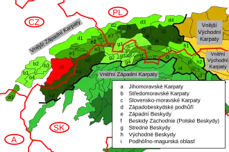 - ↑ "Česko: Geomorfologické celky podle rozlohy" (in Czech). Treking.cz. 2009-12-15. Retrieved 2023-10-17.