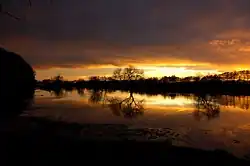 The Wümme Depression (German: Wümmeniederung) is a bog, geest and forest landscape within the Elbe–Weser triangle in the German state of Lower Saxony. It belongs mainly to the district of Rotenburg and is part of the Stade Geest. To the south it borders on the Achim-Verden Geest. It has no sharply defined boundary with the Lüneburg Heath; as a result many places are seen as belonging to both regions. Typical of the gently undulating terrain are the many small rivers, streams and lakes. These include the rivers Wümme, Wieste, Fintau, Rodau, Wiedau and Vissel, as well as the twin lakes known in German as the Bullenseen. In this ancient landscape Low German is commonly spoken.
