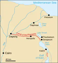- ↑ Redmount, Carol A. "The Wadi Tumilat and the "Canal of the Pharaohs"" Journal of Near Eastern Studies, Vol. 54, No. 2 (April , 1995), pp. 127-135