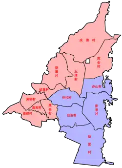 The township comprises 14 villages: Chengde, Chishan, Jiahe, Jiazuo, Liuhuang, Luliao, Sigou, Wanhe, Wanjin, Wanluan, Wanquan, Wugou, Xincuo and Xinzhi.