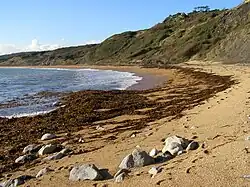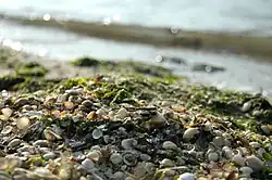 Two successive wash margins (centre and below right) comprising seaweed and eelgrass.