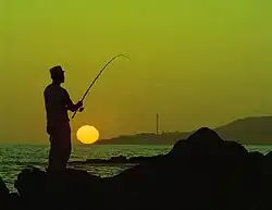 In the last years of the 19th century, White Point was developed as an abalone fishery off Rancho de Los Palos Verdes; the fishermen were mostly immigrants from Japan.[15][3] The land was legally owned by Ramon Sepulveda, who allocated an area for housing the fishermen.[16] The abalone were dried for shipment and sale; the shells were sold for $4 a ton.[17] The abalone fishery was shut down in 1905, in part to due to declining take but mostly due to the work of anti-Japanese activists in California.[12]