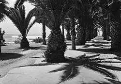 The neighboring Royal Palms resort was also developed by Sepulveda.[21] The Royal Palms Hotel was built in 1915 and destroyed in the early 1930s by a combination of sea storms and the earthquake.[4] Royal Palms Golf and Country Club building opened in 1927,[22] but the golf course closed in 1933, while the clubhouse survived until a 1955 fire.[3] A conflicting account published in one of the American Guides claimed that the 18 holes of the Royal Palms course were open to public as of 1941, at a cost of 35¢ a day on weekdays, and 50¢ on Sunday."[23] The state of California bought the beach in 1960 and in 1995 deeded it to Los Angeles County.[15]
