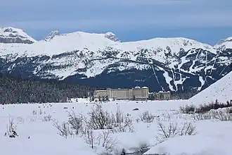 ![]() Whitehorn Mountain (including Lake Louise Ski Resort) is seen beyond Chateau Lake Louise | |