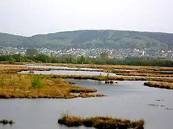 The Wiehen Hills[1] (German: Wiehengebirge, pronounced [ˈviːənɡəˌbɪʁɡə] ⓘ, also locally, just Wiehen) are a hill range in North Rhine-Westphalia and Lower Saxony in Germany. The hills run from west to east like a long finger away from the main upland area of the Lower Saxon Hills, beginning at the Weser River near Minden and terminating in the vicinity of Osnabrück. It is the northernmost of the German Central Upland ranges extending into the Northern Lowlands. Their highest hill is the Heidbrink near Lübbecke with an altitude of 320 metres (1,050 ft).