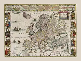 Blaeu was born at Uitgeest or Alkmaar. As the son of a well-to-do herring salesman, he was destined to succeed his father in the trade, but his interests lay more in mathematics and astronomy. Between 1594 and 1596, as a student of the Danish astronomer Tycho Brahe, he qualified as an instrument and globe maker.[1] During this time in 1596, his son Joan Blaeu was born and he would also become a well established cartographer. Later in 1600 Willem discovered the second ever variable star, now known as P Cygni.