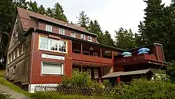 At the summit restaurant, the Wurmberg Baude is checkpoint no. 156 in the Harzer Wandernadel hiking network.