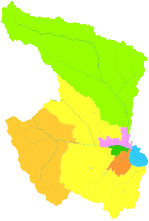 The municipality oversees seven districts and counties. The data here are presented in km2 and in population according to 2010 Census: