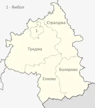 Yambol (Bulgarian: област Ямбол, oblast Yambol, former name Yambol okrug) is a province in southeastern Bulgaria, neighbouring Turkey to the south. It is named after its main city Yambol, while other towns include Straldzha, Bolyarovo and Elhovo. The province embraces a territory of 3,355.5 km2 (1,295.6 sq mi)[1] that is divided into five municipalities with a total population, as of December 2009, of 138,429.[2][3][4]