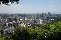 Zhonghe lies just south-west of Taipei City and shares borders with Banqiao, Xindian, Tucheng and Yonghe Districts of New Taipei City, as well as Taipei City. The average annual temperature is 21.7 °C (71.1 °F) and the precipitation averages 2,111 millimetres (83.1 in) per year. Most of Zhonghe lies a few tens of meters above sea level and is heavily urbanized, with forested hillier country in the southeast. A mountainous ridge forms most of the eastern border with Xindian, which includes the highest point in Zhonghe, the 302-meter Fenglusai (Chinese: 風爐塞山; pinyin: Fēnglúsài Shān).[2]