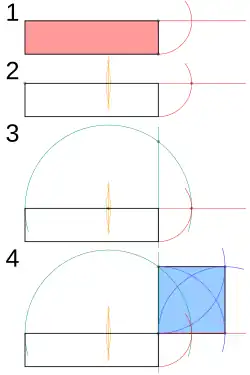 The construction of the geometric mean can be used to transform any rectangle into a square of the same area, a problem called the quadrature of a rectangle. The side length of the square is the geometric mean of the side lengths of the rectangle. More generally, it is used as a lemma in a general method for transforming any polygonal shape into a similar copy of itself with the area of any other given polygonal shape.[2]