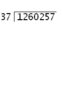 A divisor of any number of digits can be used. In this example, 1260257 is to be divided by 37. First the problem is set up as follows: