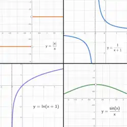 - ↑ For example, Apostol (1974), Courant (1924), Hardy (1921), Rudin (1964), Whittaker & Watson (1904) all take "limit" to mean the deleted limit.