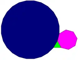 A regular triangle, octagon, and icositetragon can completely fill a plane vertex.