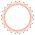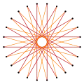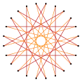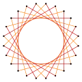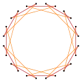 These 16 symmetries can be seen in 22 distinct symmetries on the icositetragon. John Conway labels these by a letter and group order.[2] The full symmetry of the regular form is r48 and no symmetry is labeled a1. The dihedral symmetries are divided depending on whether they pass through vertices (d for diagonal) or edges (p for perpendiculars), and i when reflection lines path through both edges and vertices. Cyclic symmetries in the middle column are labeled as g for their central gyration orders.