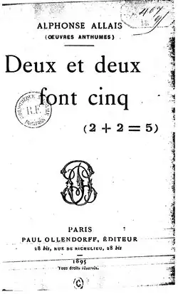 - 1 2 Allais, Alphonse (1895). Deux et deux font cinq (2 + 2 = 5) (in French). Ollendorff.