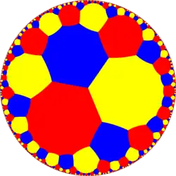 In geometry, the truncated order-8 hexagonal tiling is a semiregular tiling of the hyperbolic plane. It has Schläfli symbol of t{6,8}.