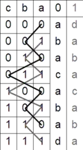 3-bit Gray code visualized as a traversal of vertices of a cube (0,1,3,2,6,7,5,4):[1]ABACABA