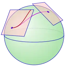 - ↑ Classically, the tangent space was viewed as an infinitesimal approximation, while in modern differential geometry, tangent spaces are often defined in terms of differential objects such as derivations.[8]