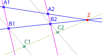- ratios of lengths of parallel line segments: for distinct parallel segments defined by points and , and , the ratio of and is the same as that of and .