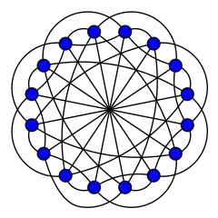 The Ramsey number R(k,l) is the smallest number r such that every graph with at least r vertices contains either a k-vertex clique or an l-vertex independent set. Ramsey numbers require enormous effort to compute; when max(k,l) ≥ 3 only finitely many of them are known precisely, and an exact computation of R(6,6) is believed to be out of reach.[29] In 1953, the calculation of R(3,3) was given as a question in the Putnam Competition. In 1955, motivated by this problem,[30] Gleason and his co-author Robert E. Greenwood made significant progress in the computation of Ramsey numbers with their proof that R(3,4) = 9, R(3,5) = 14, and R(4,4) = 18. Since then, only five more of these values have been found.[31] In the same 1955 paper, Greenwood and Gleason also computed the multicolor Ramsey number R(3,3,3): the smallest number r such that, if a complete graph on r vertices has its edges colored with three colors, then it necessarily contains a monochromatic triangle. As they showed, R(3,3,3) = 17; this remains the only nontrivial multicolor Ramsey number whose exact value is known.[31] As part of their proof, they used an algebraic construction to show that a 16-vertex complete graph can be decomposed into three disjoint copies of a triangle-free 5-regular graph with 16 vertices and 40 edges[25][32] (sometimes called the Greenwood–Gleason graph).[33]