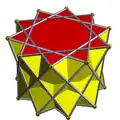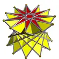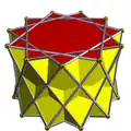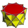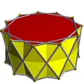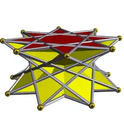 Four-dimensional antiprisms can be defined as having two dual polyhedra as parallel opposite faces, so that each three-dimensional face between them comes from two dual parts of the polyhedra: a vertex and a dual polygon, or two dual edges. Every three-dimensional convex polyhedron is combinatorially equivalent to one of the two opposite faces of a four-dimensional antiprism, constructed from its canonical polyhedron and its polar dual.[10] However, there exist four-dimensional polychora that cannot be combined with their duals to form five-dimensional antiprisms.[11]