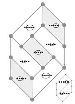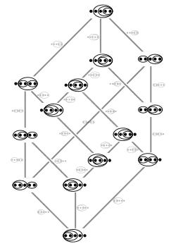 Each vertex in the above Hasse diagram has the ovals from the 3 adjacent faces. Faces whose ovals intersect do not touch.