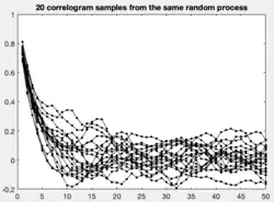 In the analysis of data, a correlogram is a chart of correlation statistics. For example, in time series analysis, a plot of the sample autocorrelations versus (the time lags) is an autocorrelogram. If cross-correlation is plotted, the result is called a cross-correlogram.