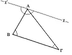 As an example, a proof of the theorem on the sum of angles of a triangle can be done by adding a straight line parallel to one of the triangle sides (passing through the opposite vertex).[2]